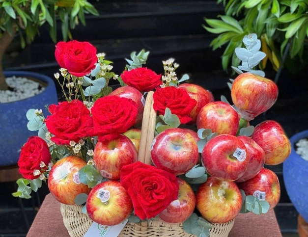 táo đỏ kết hợp cùng với hoa đỏ, tuy đơn giản nhưng rất tinh tế