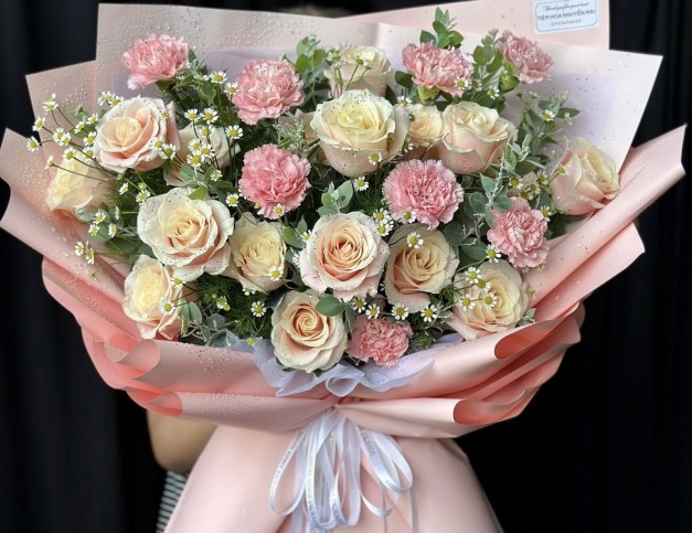 một bó hoa được mix các màu pastel với nhau tạo nên một sản phẩm mang màu sắc nhẹ nhàng đáng yêu, món quà xinh xắn cho người phụ nữ yêu thương của bạn