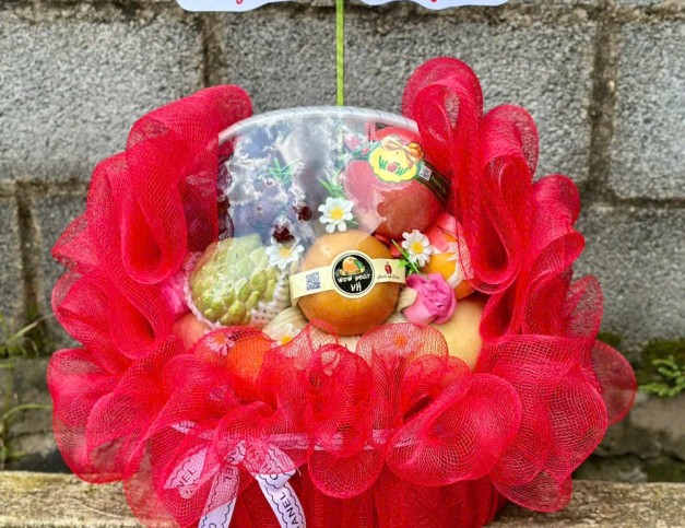 các loại trái cây mix kèm lưới đỏ rực rỡ