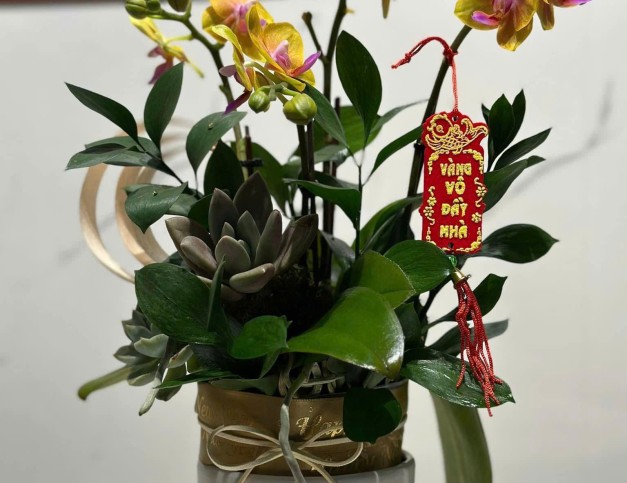 một chậu lan nhỏ xinh xắn với tone vàng rực rỡ