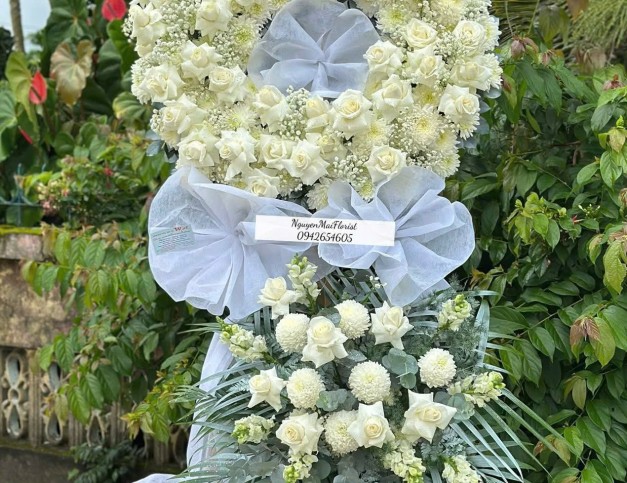 Cúc trắng mix cùng hồng trắng, lan trắng điểm cùng baby trắng