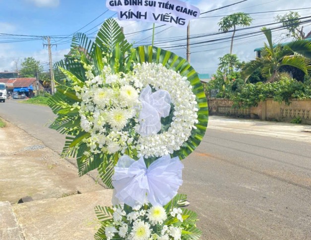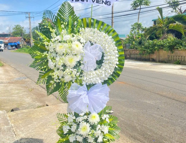 Cúc trắng cùng lan trắng được phối chung tạo nên một kệ hoa viếng truyền thống nhưng trang trọng và tinh tế