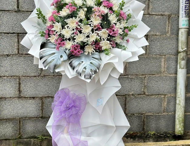 Kệ viếng truyền thống với tone trắng tím, sự lựa chọn hoàn hảo để gửi lời chia buồn